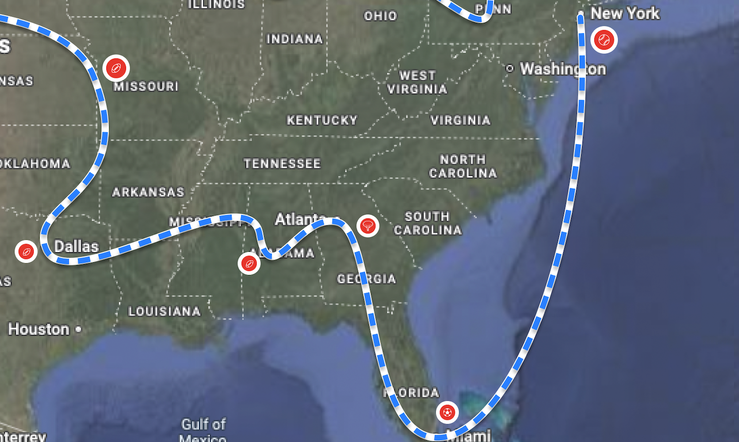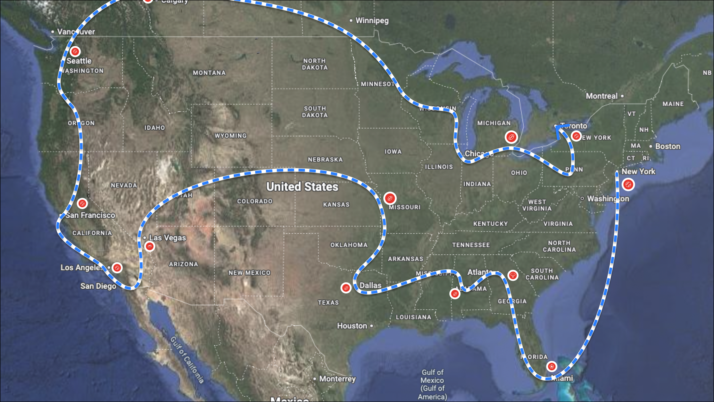 Build your personal map of stadiums across the country.
